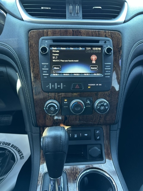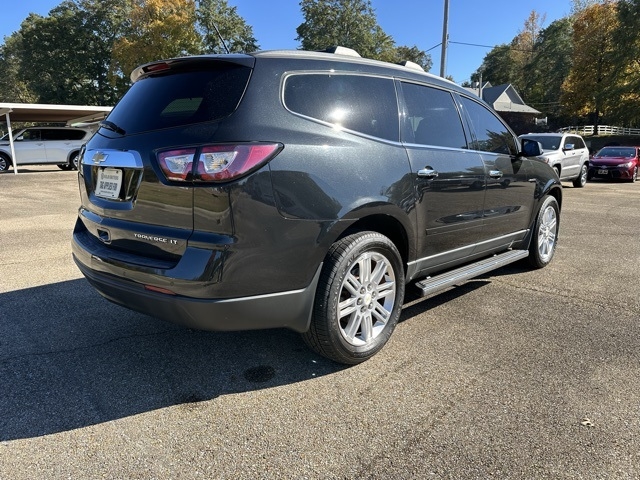 POWER PACKAGE, TRADE-INS WELCOME. Odometer is 35075 miles below market average! CARFAX One-Owner. Financing Options Available To Everyone! Nolan Brothers - Tupelo is excited to offer this handsome 2014 Chevrolet Traverse LT in Black Granite Metallic. Well equipped with:All-Star Edition (20" x 7.5" Machined Painted Spoke Wheels, Heated Driver & Front Passenger Seats, Radio: Chevrolet MyLink, SiriusXM Satellite Radio, and Universal Home Remote), Hit The Road Package (Chrome Assist Steps and Roof Rack Longitudinal C-Channels & Cross Rails), Preferred Equipment Group 1LT (8-Way Power Driver Seat w/Power Lumbar, Bluetooth® For Phone, Body-Color Bodyside Moldings, Body-Color Heated Power-Adjustable Outside Mirrors, Enhanced Driver Information Center, Front Fog Lamps, Front Row Side-Impact Air Bags, Integral Spotter Mirrors, Interior Wood Grain Center Stack & Interior Trim, Leather-Wrapped Steering Wheel, Rear Park Assist, Redundant Audio Controls on Steering Wheel, Remote Vehicle Start, Single-Zone Manual Front Climate Control, Standard Speaker System, and Variable Effort Power Steering), Trailering Equipment (Heavy-Duty Cooling System and Trailer Hitch), 18" x 7.5" Aluminum (4) Wheels, 3.16 Axle Ratio, 3rd row seats: split-bench, 4-Wheel Disc Brakes, 6 Speakers, 7-Passenger Seating (2-2-3 Seating Configuration), 8-Passenger Seating (2-3-3 Seating Configuration), ABS brakes, Air Conditioning, Alloy wheels, AM/FM radio: SiriusXM, Bodyside moldings, Brake assist, Bumpers: body-color, CD player, Compass, Delay-off headlights, Driver door bin, Driver vanity mirror, Dual front impact airbags, Dual front side impact airbags, Electronic Stability Control, Emergency communication system: OnStar Directions & Connections, Exterior Parking Camera Rear, Four wheel independent suspension, Front anti-roll bar, Front Bucket Seats, Front Center Armrest w/Storage, Front fog lights, Front reading lights, Fully automatic headlights, Heated door mirrors, Illuminated entry, Low tire pressure warning, Occupant sensing airbag, Outside temperature display, Overhead airbag, Panic alarm, Passenger door bin, Passenger vanity mirror, Power door mirrors, Power driver seat, Power steering, Power windows, Premium Cloth Seat Trim, Radio data system, Radio: Color Touch AM/FM/HD/CD Player, Rear air conditioning, Rear anti-roll bar, Rear reading lights, Rear seat center armrest, Rear window defroster, Rear window wiper, Reclining Front Bucket Seats, Remote keyless entry, Roof rack: rails only, Security system, Speed control, Speed-sensing steering, Split folding rear seat, Spoiler, Steering wheel mounted audio controls, Tachometer, Telescoping steering wheel, Tilt steering wheel, Traction control, Trip computer, Turn signal indicator mirrors, Variably intermittent wipers, and Voltmeter.
